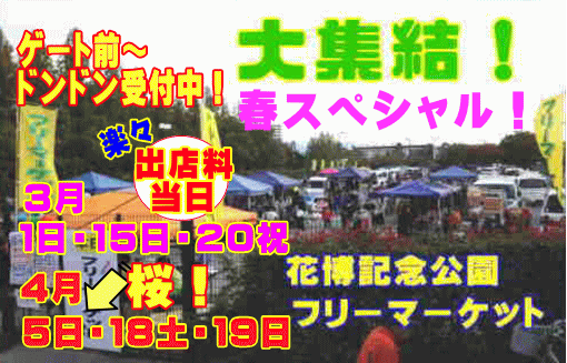 | 次回 3/9(日) おススメ会場! あま遺跡公園フリマ 大好評! ●公園ルール:重り無しのテントは、使用禁止です。 ![]() |