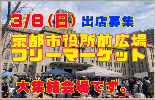 | ★京都市役所フリマ 2/11中止決定しました。 ★出店者様へ 中止振替日無し ⭐️次回は、3/8(日)!! ドンドン受付中! 再度エントリーを 出来るだけお願い致します。 ★★PR駅貼りポスターもバッチリ手配! |